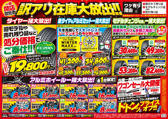 7月冬タイヤ値上げ前のお買い得品など