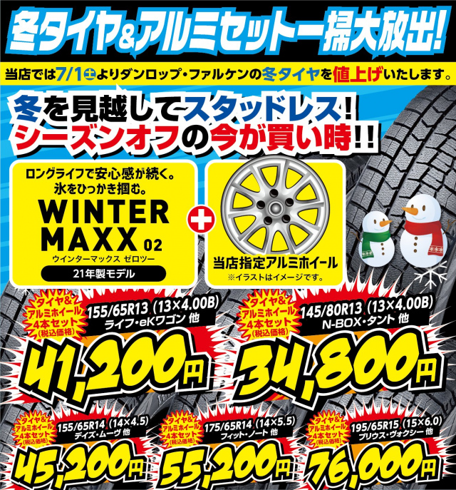 来月よりスタッドレスタイヤが値上げとなります。