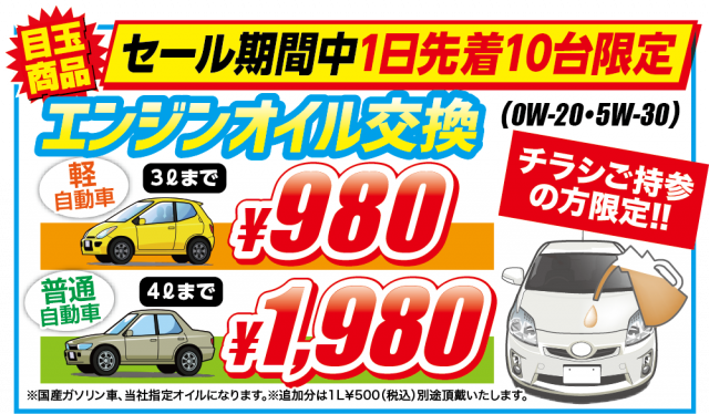 タイヤはもちろん、オイル・バッテリーなど大変お買得となっています。