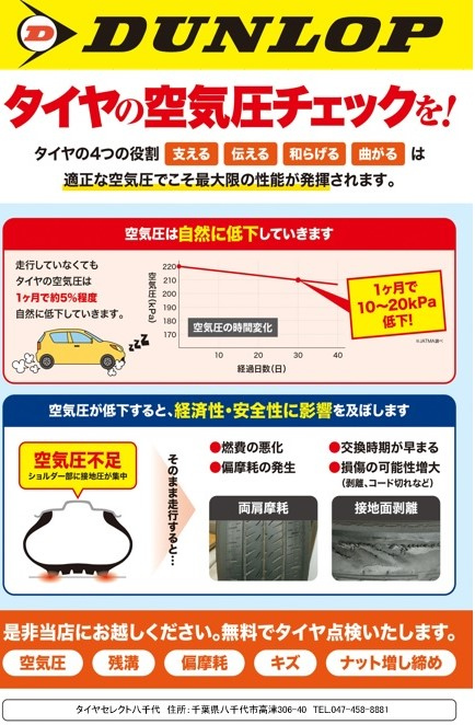 空気圧が低下しますと、経済性・安全性に影響を及ぼします。