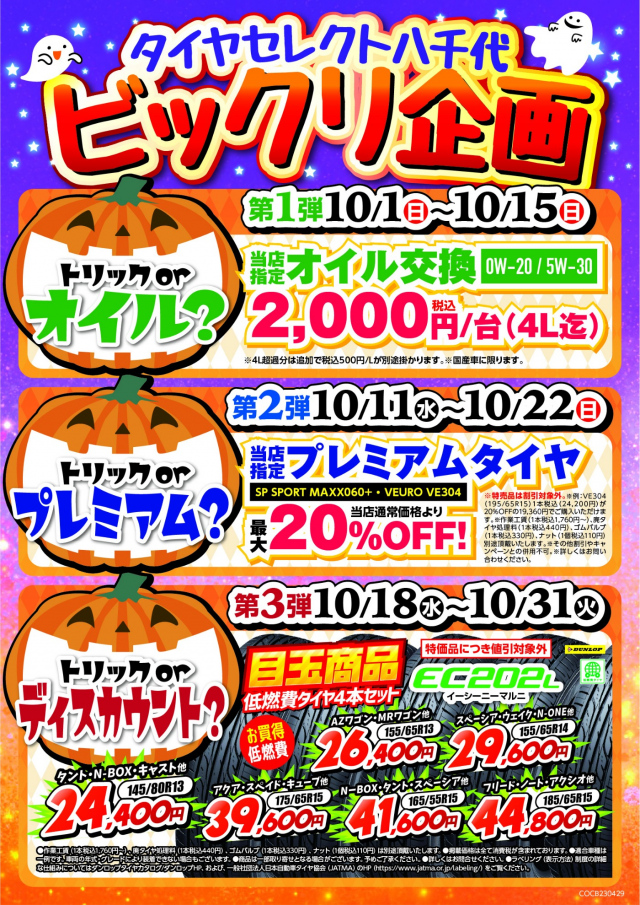 今月はハロウィンキャンペーンとして週代わりでお得な情報が変わります