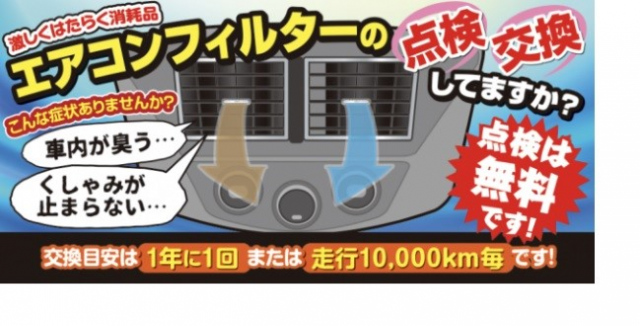 タイヤ点検と一緒にエアコンフィルターの点検をしてみませんか?