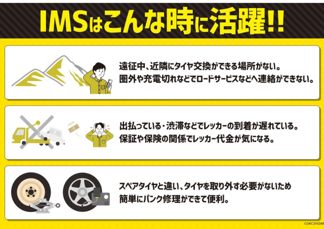 当店ではパンク修理キット(IMS)を常時在庫しており、無料点検を実施中です。