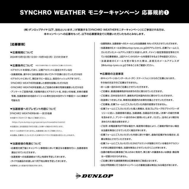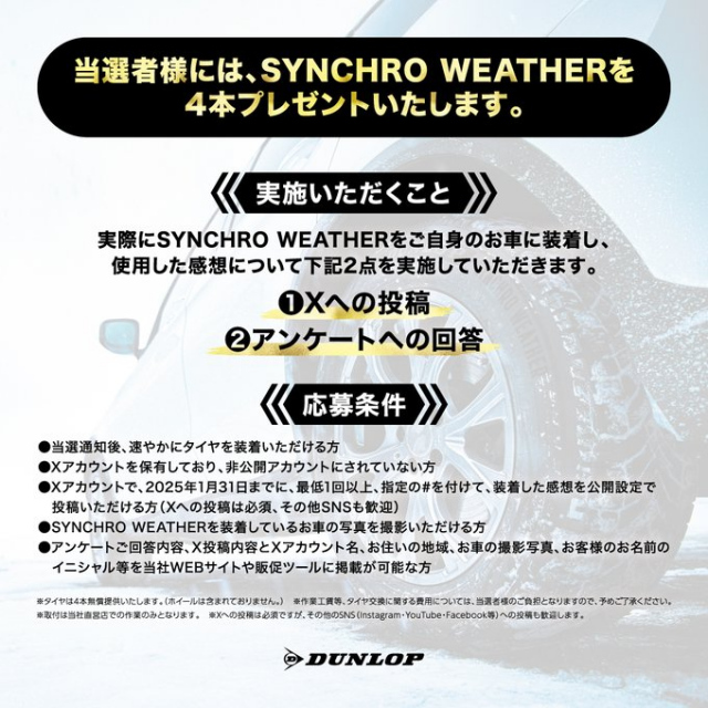 ダンロップタイヤの新商品、#SYNCHROWEATHER が本日10/1に発売されます!