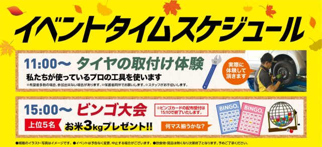 秋祭り準備着々と進めています 当日は作業の受付はしていないので イベント前にタイヤなどのご相談は事前にご来店下さい m--m