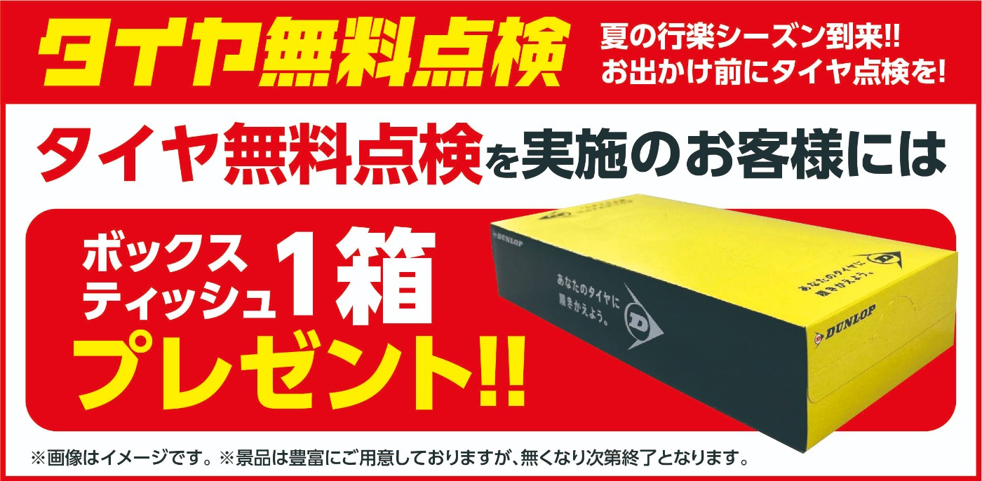 全力セール開催中です 期間中無料されたお客様にBOXティッシュ1箱プレゼントしております タイヤ・アルミ・オイル・バッテリーなどお気軽にご相談下さい