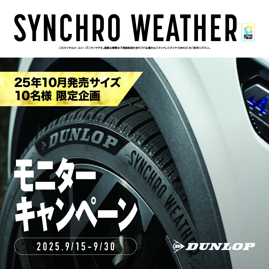 昨年10月に発売したダンロップタイヤのオールシーズンタイヤ「SYNCHRO WEATHER」の一般モニターを募集いたします!