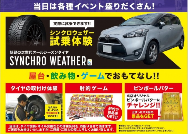 #千葉県 #八千代市 #習志野市 #船橋市#花見川区 #佐倉市 #白井市 #四街道市 #印西市 #鎌ヶ谷市 #柏市 #松戸市 #タイヤ #ダンロップ #点検 #無料 #シンクロウェザー #二刀流 #オールシーズンタイヤ #もちが良い #雨に強い #コスパが良い #オイル交換 #エレメント交換 #フラッシング #バッテリー #スタッドレスタイヤ #ウィンターマックス #WM03 #WM02 #SPORTMAXXLUX #スポーツマックスラックス #W11 #SPORTMAXXRS #スポーツマックスRS #チームダンロップ未来プロジェクト #レックス #ヒマワリ #向日葵 #ラギットテレーン #アルミホイール #ドライTシャツ #ディレクターズチェア #シェラカップ #タオル #速乾 #ウェットティッシュ #エコバッグ #ツナギ #サロペット #カラビナ #バルブキャップ #IMS #パンク #パンク修理キット #秋祭り