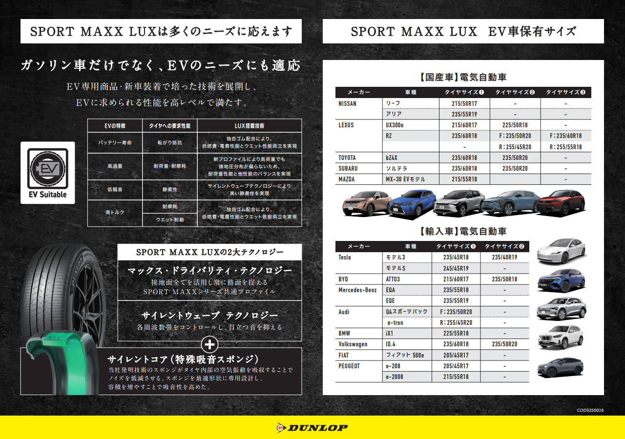 SPORT MAXX LUXはこのような特徴を持つEV車の要求性能を高いレベルで満たしています!