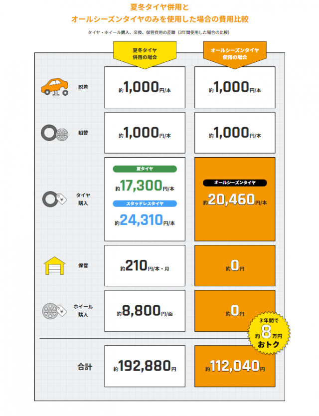 ”夏も冬も履き替え要らず。積雪も走れて雪道も安心かつ経済的!”