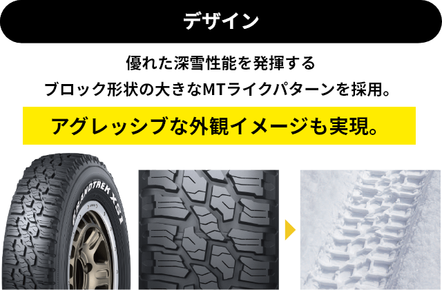 タイヤのパターンも従来のスタッドレスのブロック感がなくゴツゴツとした