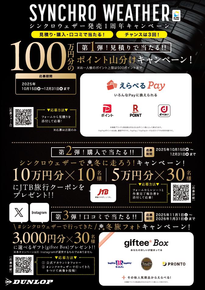 第2弾:購入で当たる!「シンクロウェザーで冬に走ろう!キャンペーン」