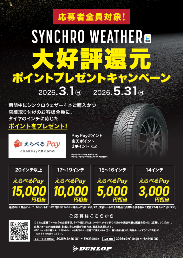 レシート有効期間内にシンクロウェザーを4本ご購入のうえ、