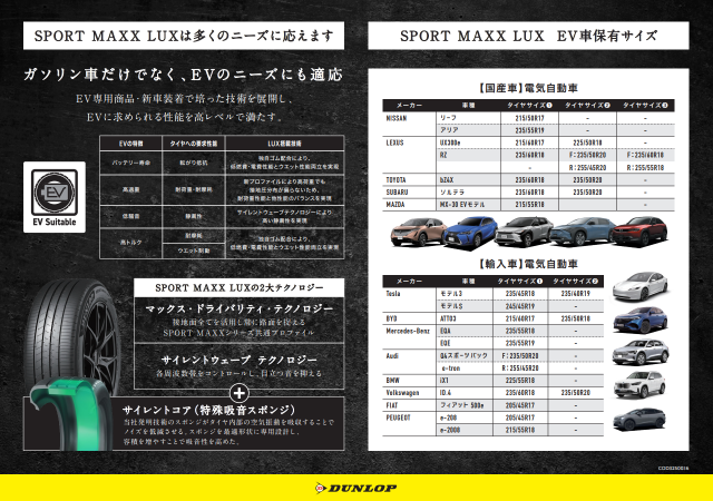 こんにちは! いつもお世話になっております。 タイヤセレクトしんよこはま店です。 今回はSPORT MAXX LUX について書かせていただきます! 新商品のSPORT MAXX LUX 実は、ガソリン車だけではなくEV車にも対応...