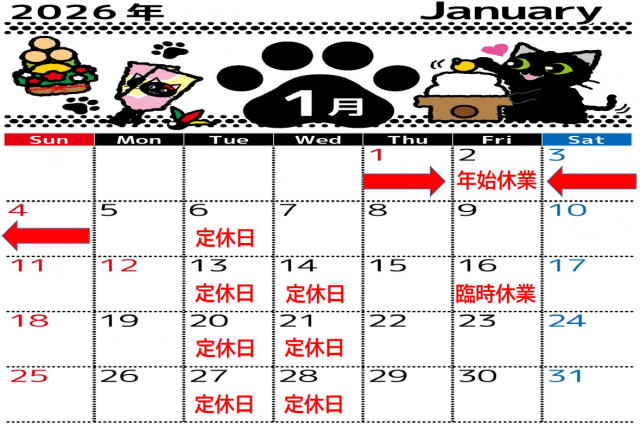 2026年1月 定休日のお知らせ