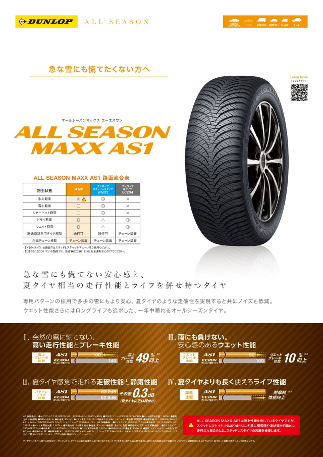 ダンロップタイヤ人気のオールシーズタイヤに!