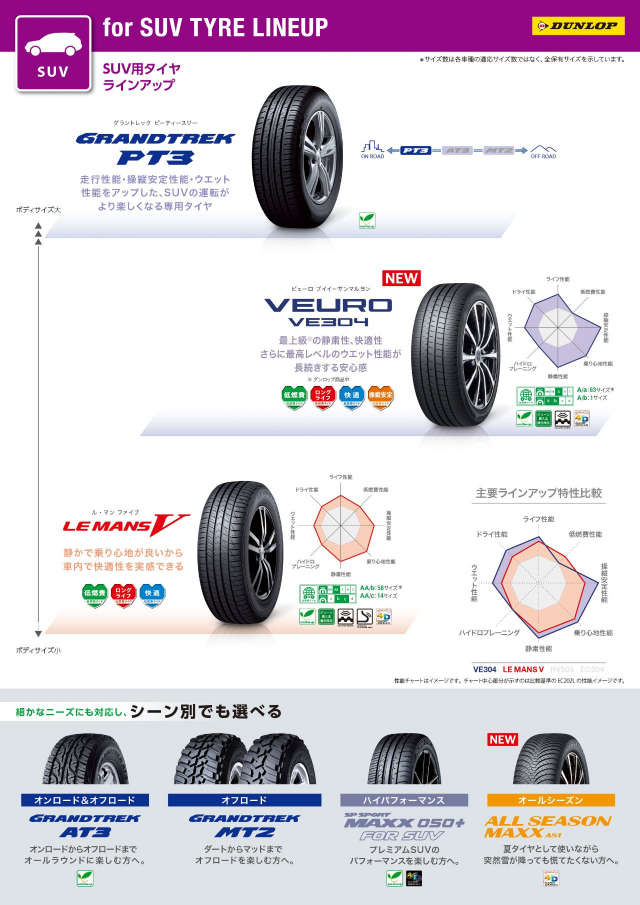 高速走行性能・静粛性能・ウェット性能・耐摩耗性能