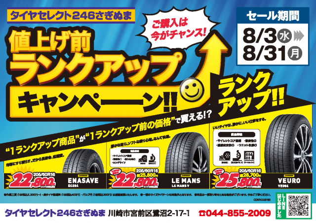 ランクアップキャンペーン実施中!! 8/31まで!!