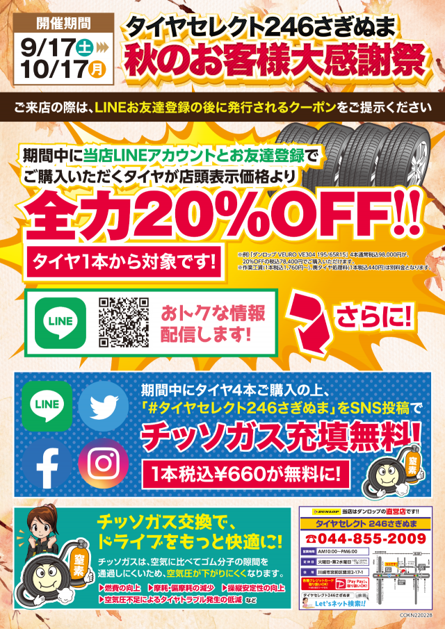 秋のお客様大感謝祭!! 10/17(月)まで開催!!!