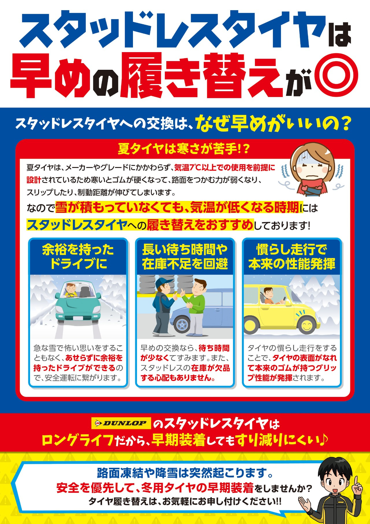 冬タイヤのご購入や履き替え、お見積り等お考えの方は、ぜひ早めのご来店をお待ちしております!