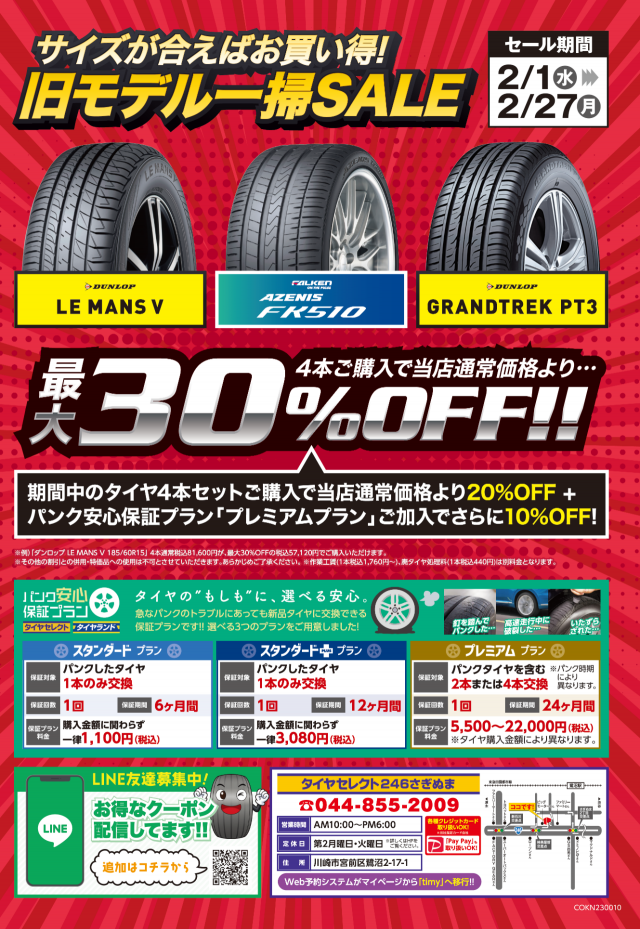 ・期間中セール対象のタイヤ4本購入で当店通常価格より20%OFF
