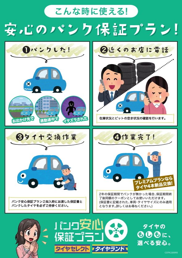 「もしも…」の時のために、ぜひパンク安心保証プランの加入を