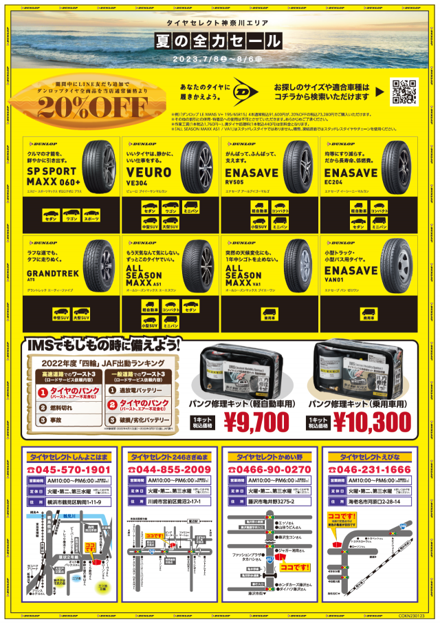 こちらのセール、7/8(土)から神奈川県タイヤセレクト全店舗でスタート!