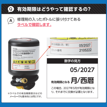 応急パンク修理キットには有効期限があります!