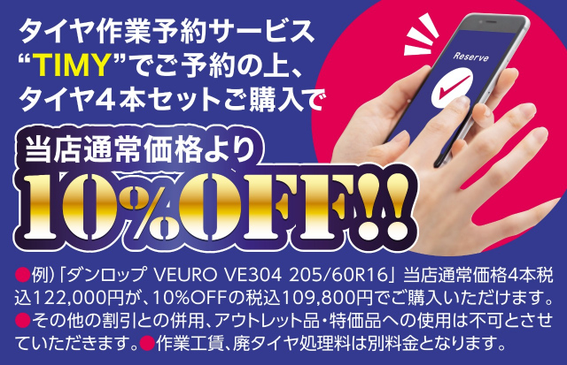 ③最後が肝心!タイヤ作業予約サービス TIMY でご予約いただき4本セットでご購入時に