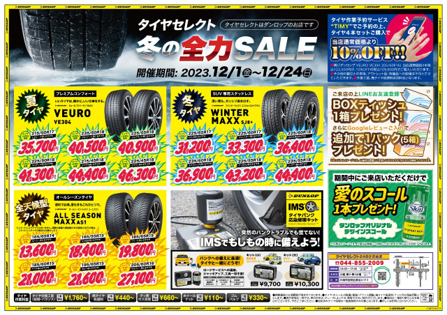 タイヤの金額などは下記チラシや電話でのお問い合わせでぜひご確認ください!!