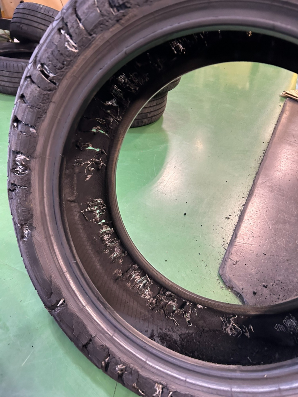 今回も凄まじい破損のタイヤが来ました。