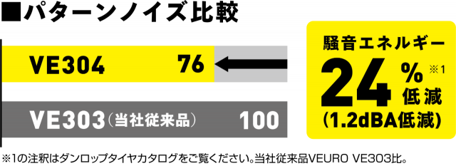 形状を前型のVE303から進化させることで、タイヤ外側から静かさへアプローチ…