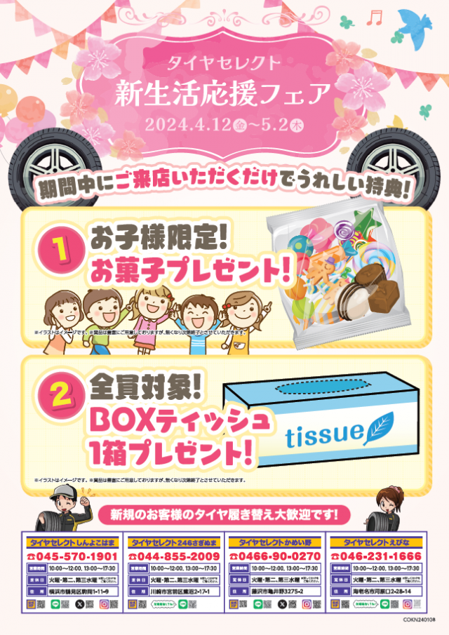 タイヤセレクト246さぎぬま では小学生6年生までのお子様連れ限定で