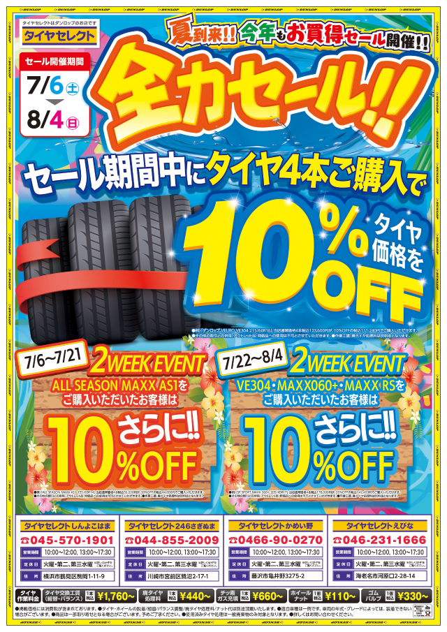 前半の7/6~7/21では オールシーズンタイヤががなんと さらに10%OFF!!