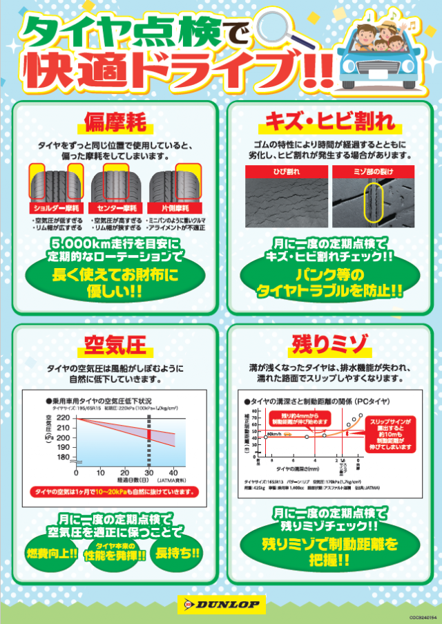 普段何気なく乗っている愛車のタイヤ点検はぜひダンロップタイヤセレクトへお任せください!