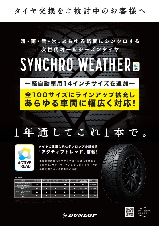 ぜひこれからの時期、天気が不安定になります。シンクロウェザーに履き替えて安心安全なカーライフにしましょう!!!