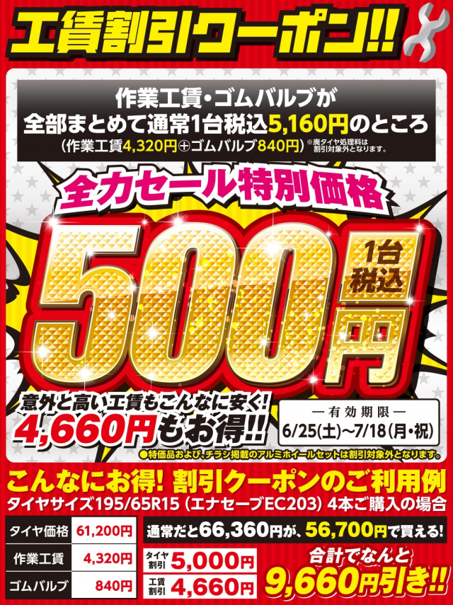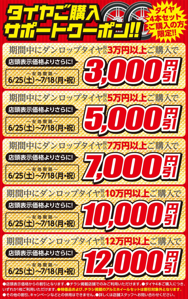 ※タイヤ4本ご購入につき、いずれかい1枚ご利用頂けます。