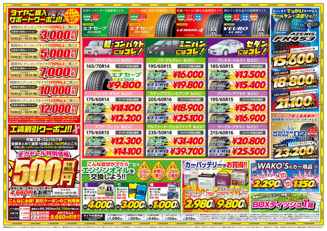 また、タイヤご購入クーポンや工賃割引クーポンも