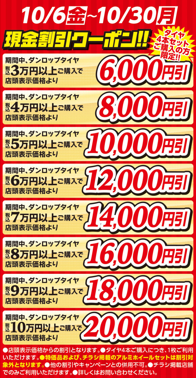ダンロップタイヤ4本ご購入の方限定!