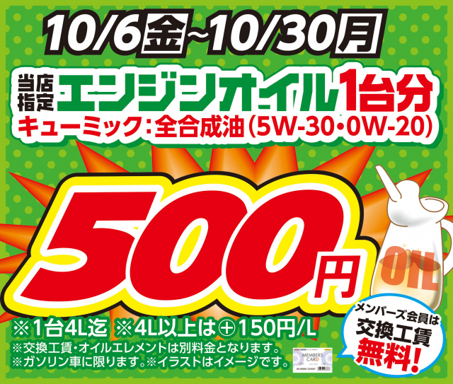 当店指定オイル キューミック(全合成油)が