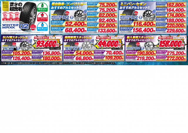 スタッドレスタイヤとアルミホイールセットもお得に!