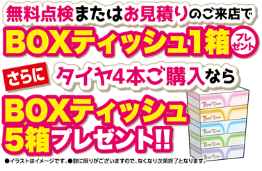 タイヤご購入なら5箱プレゼント!!