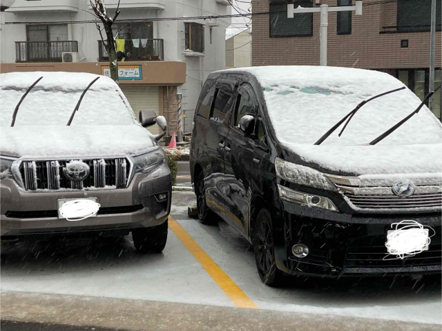 スタッフの車も雪が積もってます!!!