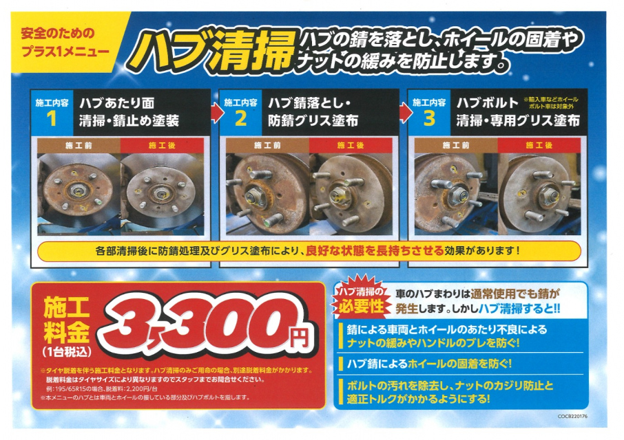 ハブ清掃のみご希望のお客様は別途 脱着料¥550ー×4本が発生いたします。