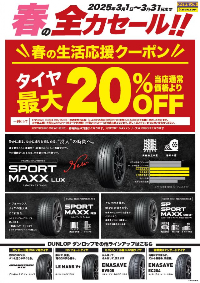 ダンロップ・ファルケンタイヤの価格を値上げします。