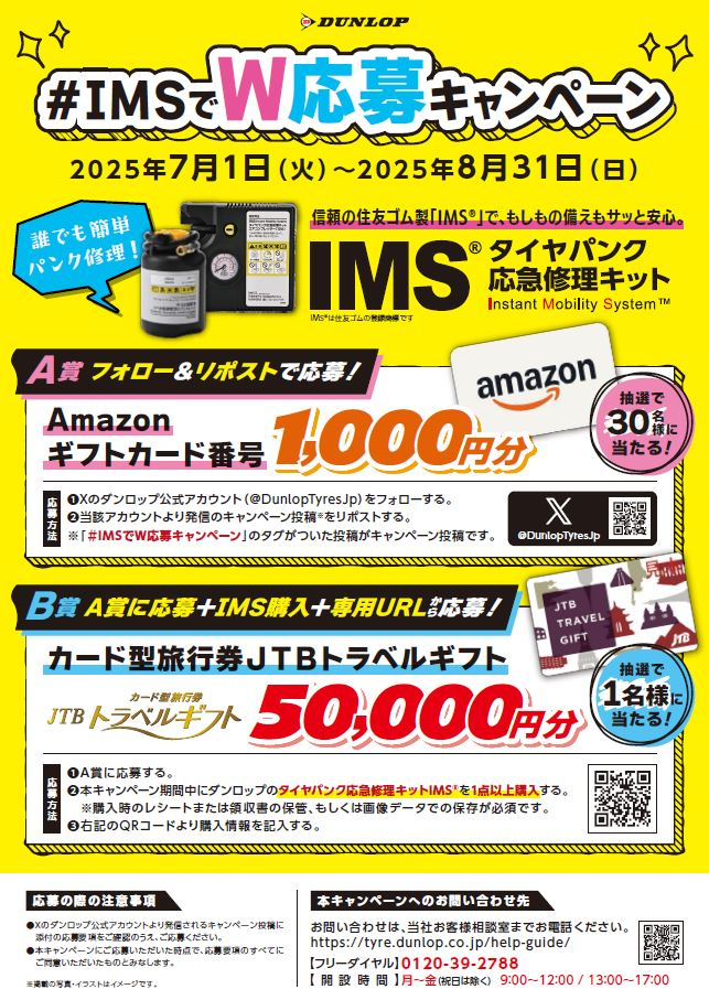 ➁期間中にダンロップのタイヤパンク応急修理キットIMSを1点以上購入する。