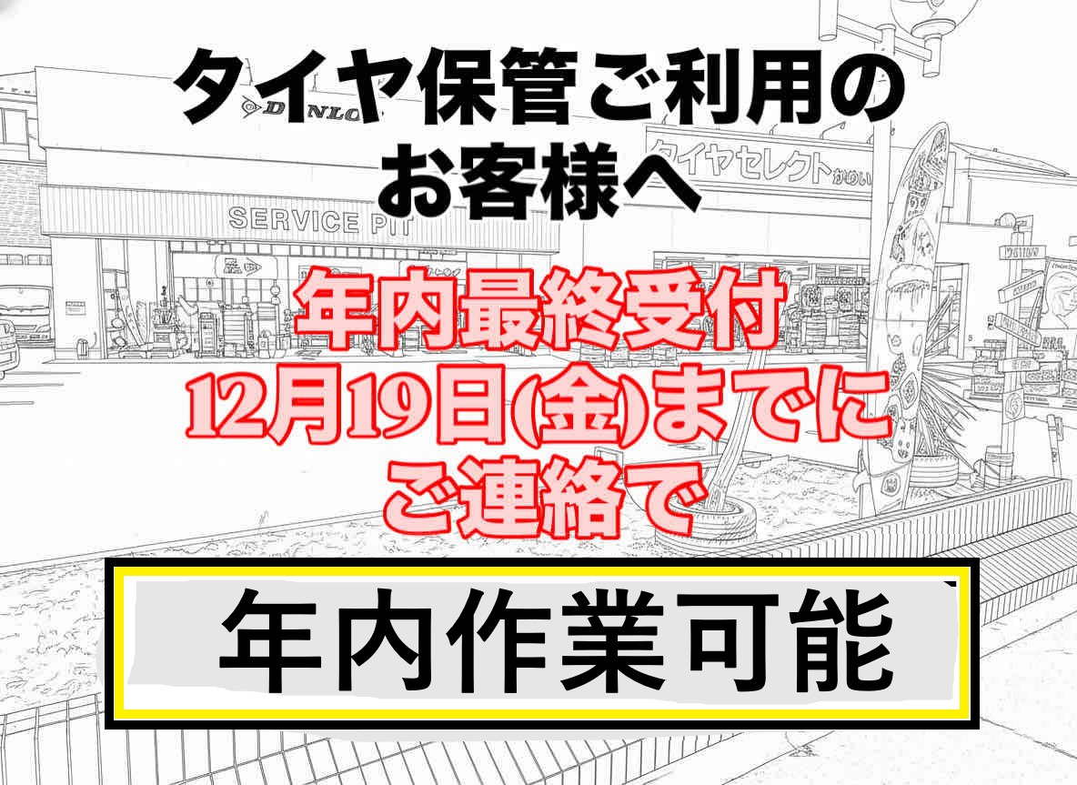 タイヤお預かりサービスの年内最終受付は