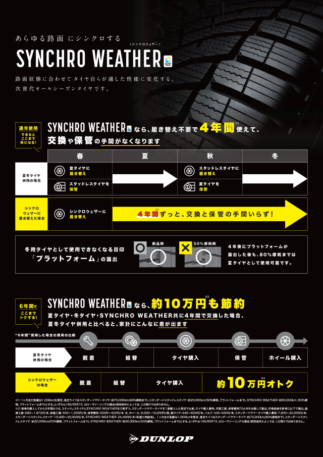 タイヤセレクトかめい野店です(`・ω・´) シンクロウェザーをお考えに方、そうでない方にもお知らせです(^^)/ シンクロウェザーって結構いい値段するな!! 高い!! というお声もありますが、使用用途であったりスタ...
