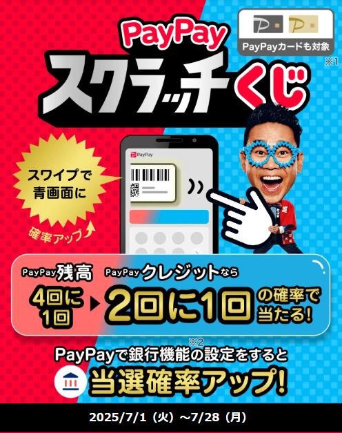 いつも当店のHPを ご覧いただき有難うございます! / PayPayスクラッチくじ 開催期間:2025/07/01~07/28まで \ PayPayまたはPayPayカードで 200円以上のお支払いすると、 1等 100% 2等 5% 3等 0.5%...