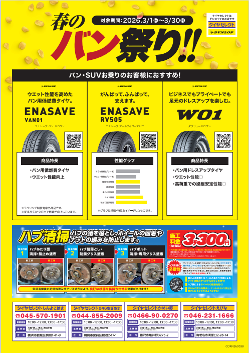 こんにちは(*'▽') タイヤセレクトえびな店です! 11月29日より 超!お得なキャンペーンのご案内です! ①タイヤ4本交換で20%OFF! ※作業工賃とタイヤ処分料を別途いただきます。 ※SYNCHRO WEATHERと一部特...